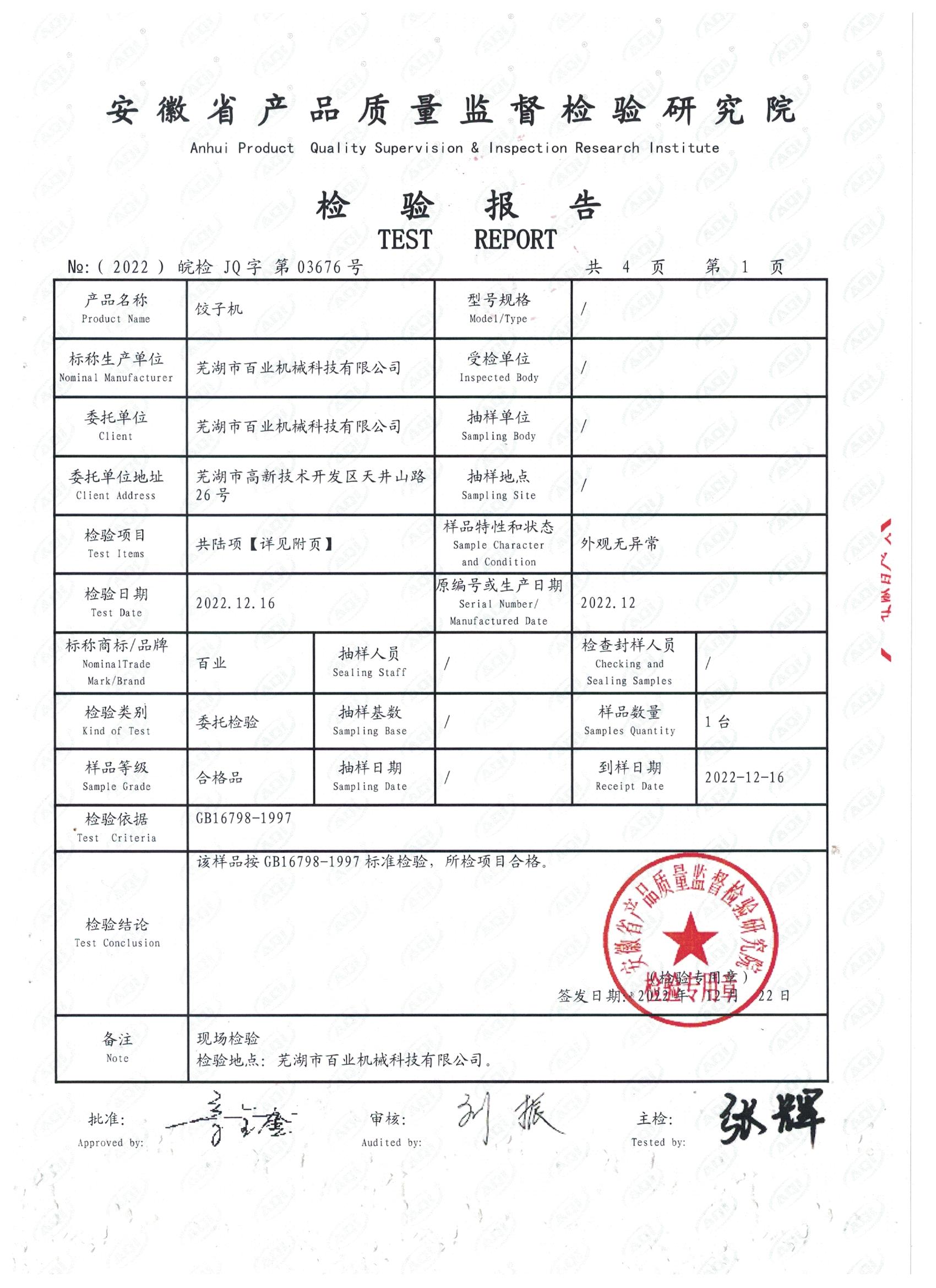質(zhì)檢報(bào)告